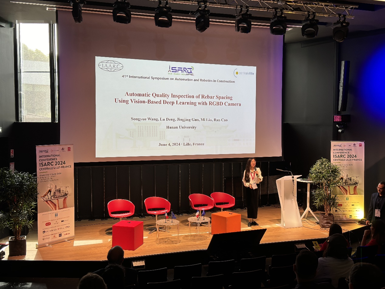 6月3日-5日,第41届国际建筑自动化和机器人国际研讨会(ISARC,International Symposium on Automation and Robotics in Construction)在法国里尔召开,学院邓露教授团队受邀做大会主旨报告。本次大会共评选12篇优秀论文,邓露教授团队2篇论文被评选为优秀论文,其中一篇获得大会唯一“最佳论文奖”。