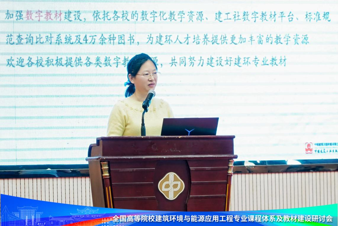 中国建筑出版传媒有限公司教育教材分社齐庆梅作报告。